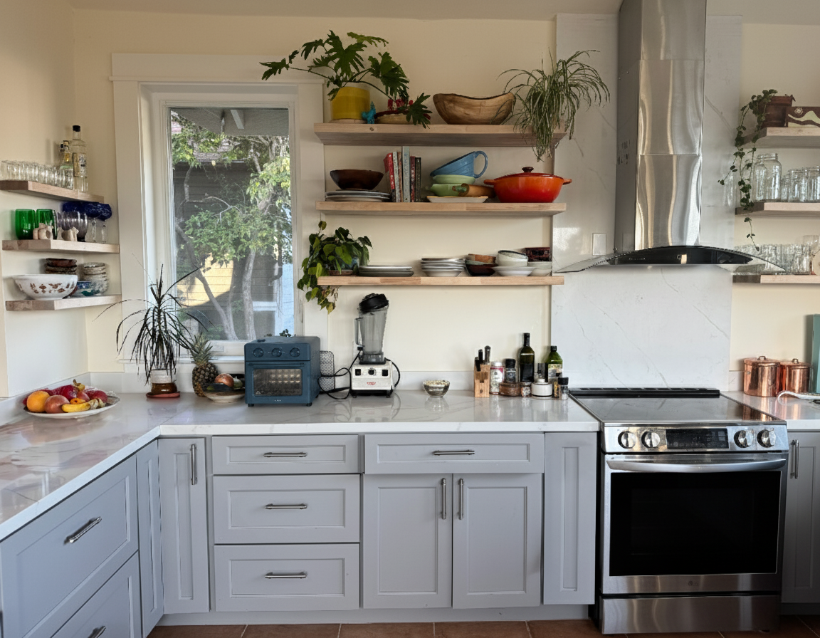 Located in East Oakland, Canticle Farm is an intentional community and urban farm dedicated to restorative justice, education, and healing. The project involved the renovation and addition to "Brother Sun," an existing craftsman house that is part of the larger communal property. The scope included a completely new kitchen, bathroom, and master suite, thoughtfully designed to support the community's core values of service and simplicity. This renovation is integrated into a unique urban village where fences between multiple houses have been removed to create a unified, shared garden landscape.